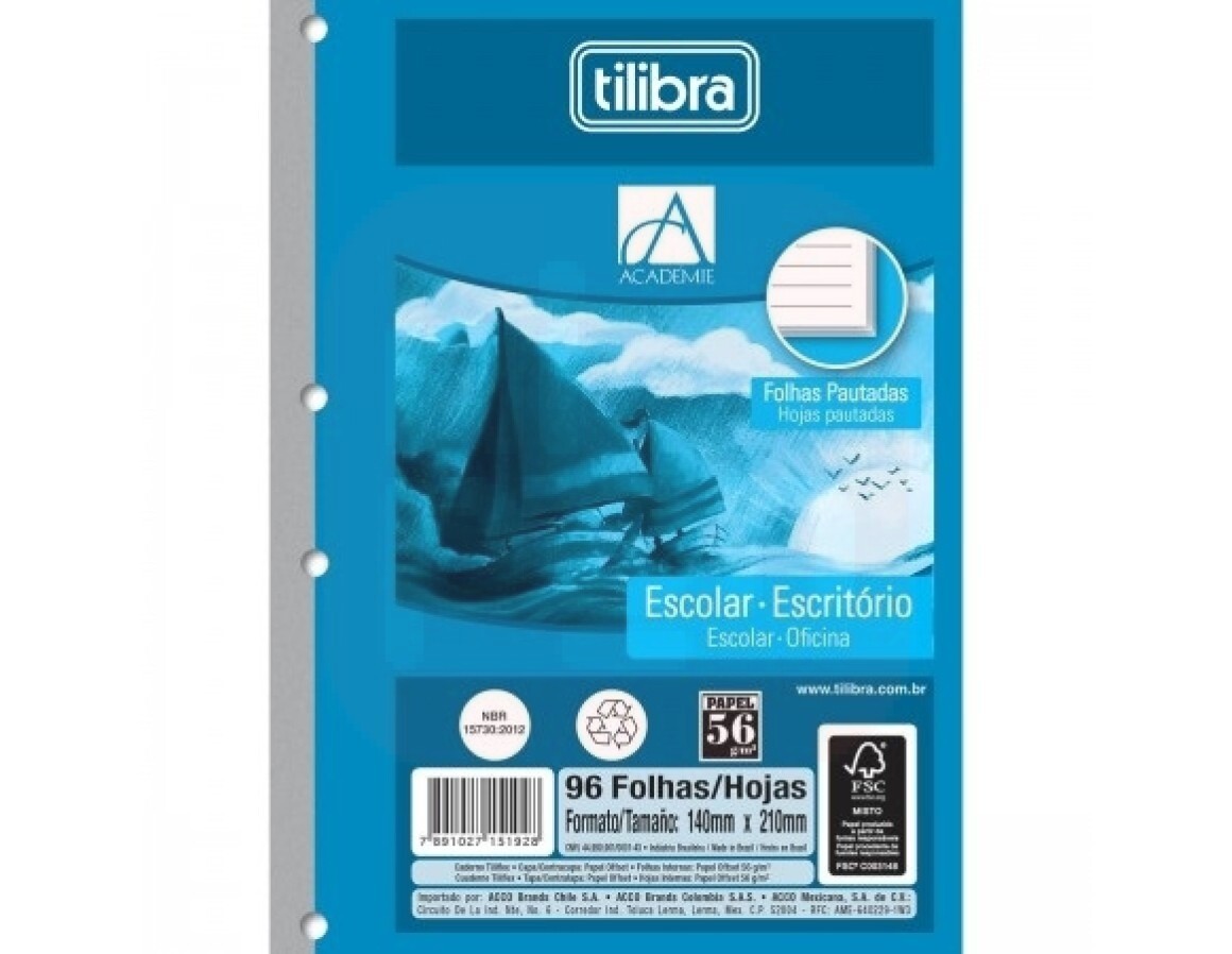 2. Bloco de Fichário 1/4 Academie 80 Folhas - Tilibra