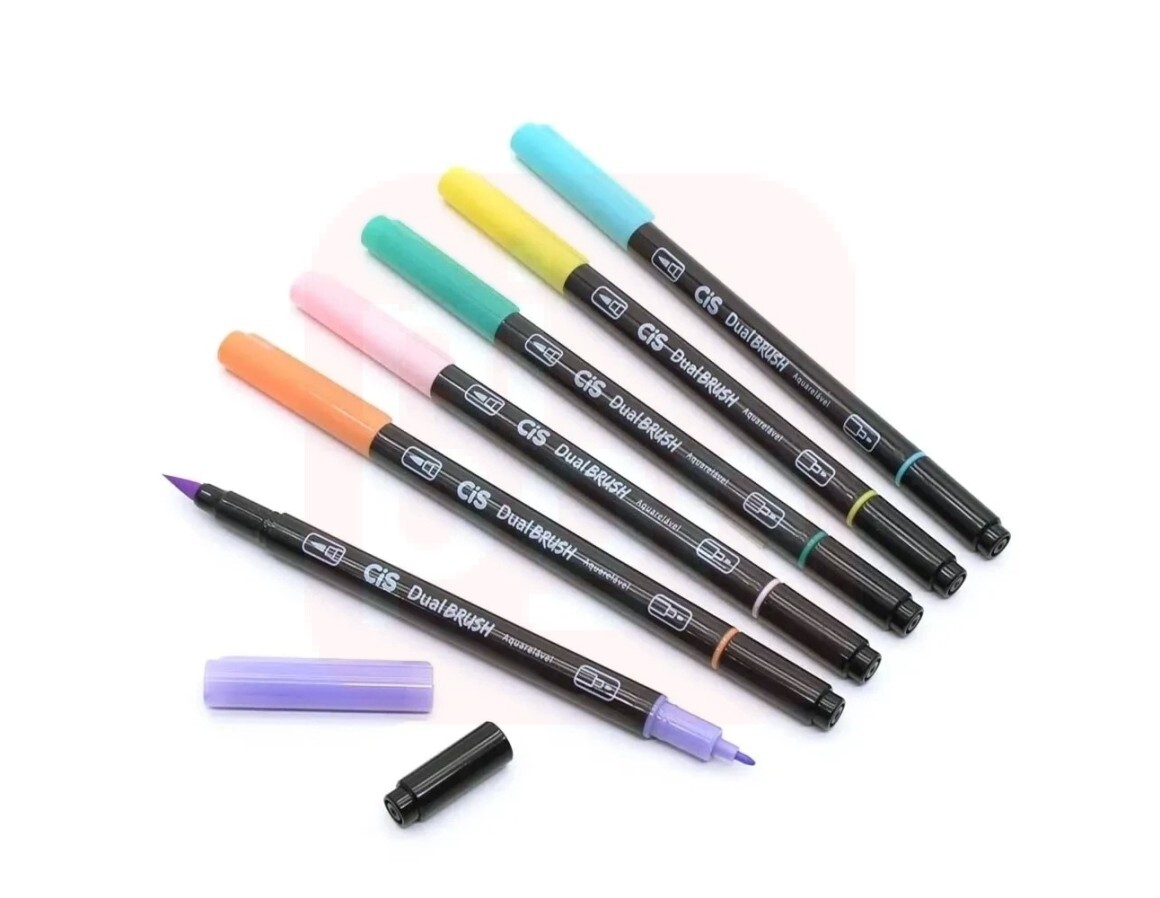 Caneta Brush Pen 6 Cores Pastel - Cis