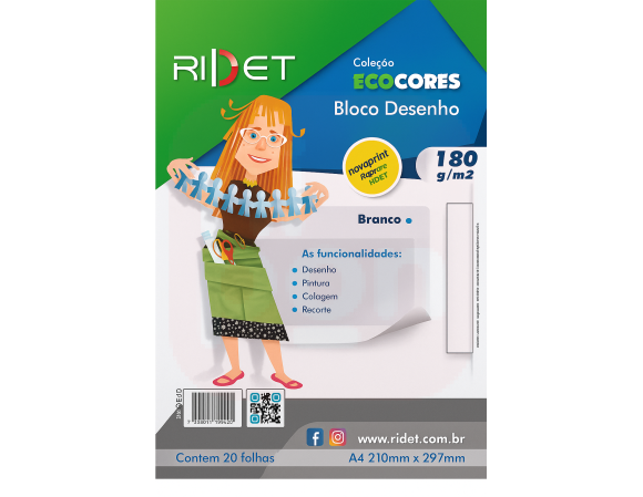 Bloco Desenho Ecocores A4 180gr 21x29,7 Cm 20fls Ridet