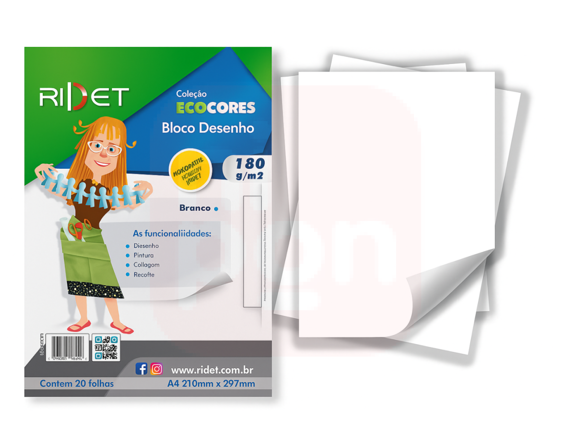 2. Bloco Desenho Ecocores A4 180gr 21x29,7 Cm 20fls Ridet